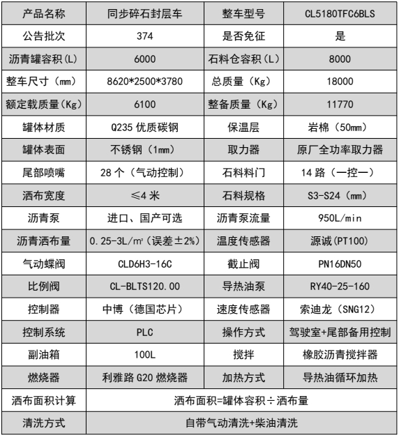 湖北程力汽车:程力CL5180TFC6BLS型陕汽德龙单桥沥青碎石同步封层车产品型号及参数配置,程力CL5180TFC6BLS型陕汽德龙单桥沥青碎石同步封层车高清图片,程力汽车系列程力CL5180TFC6BLS型陕汽德龙单桥沥青碎石同步封层车最新报价请拨打客服热线。车辆主要配置 产品商标 程力牌 公告批次 389(扩展) 产品名称 同步碎石封层车 产品型号 CL5180TFC6BLS 总质量(Kg) 18000 罐体容积(m3) 额定载质量(Kg) 6100,6035 外形尺寸(mm) 8620 × 2500 × 3780 整备质量...