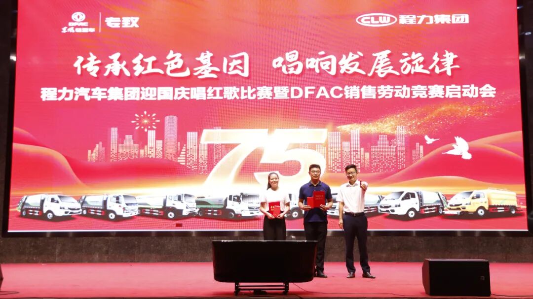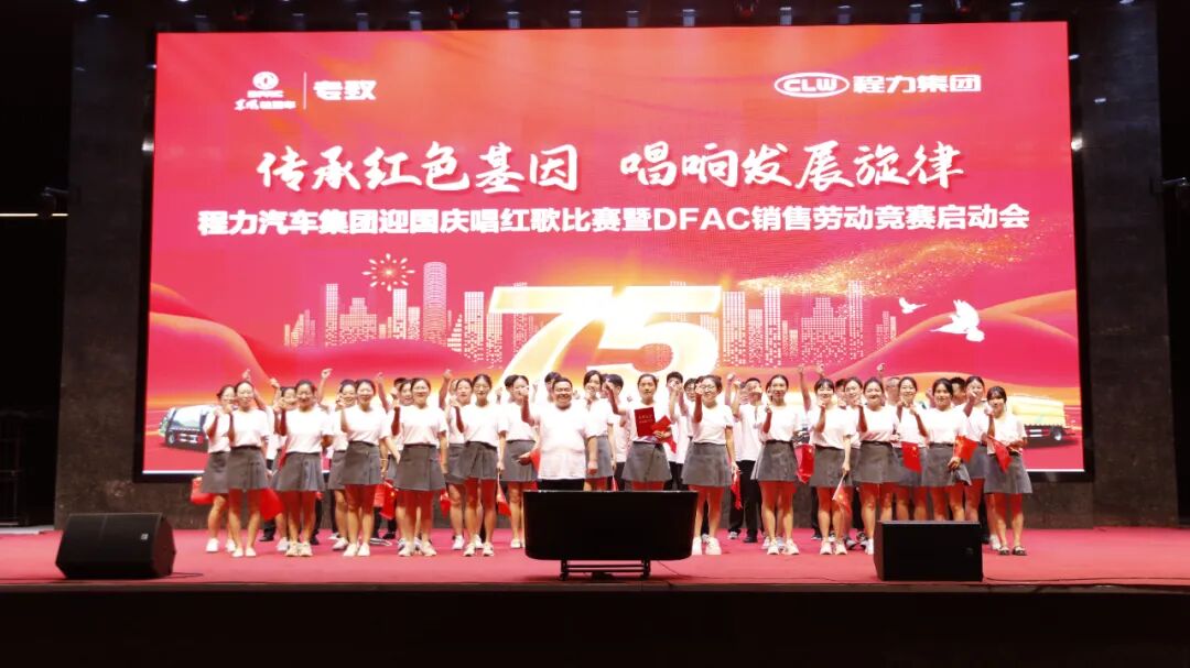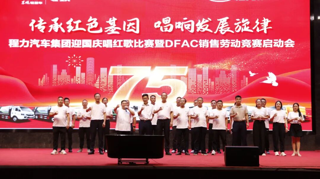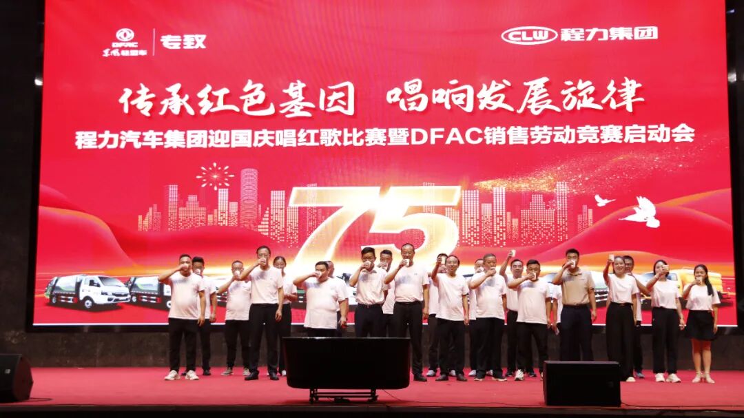 ”壮美山河迎华诞,飒爽英姿颂祖国;紫气东来碧空尽,日月生辉唱红歌“,9月29日,为庆祝中华人民共和国建国75周年,程力汽车集团携手东风股份有限公司,在随州市曾都区程力汽车工业园文化广场程力大舞台,隆重举行迎国庆唱红歌比赛暨DFAC销售劳动竞赛启动会,来自程力汽车集团公司唱红歌的参赛员工与东风股份歌唱团,以及各界领导嘉宾和公司销售精英1000余人出席了盛会;我们相约在程力汽车集团,共同感受到了新时代的中国,蓬勃发展的万千气象。