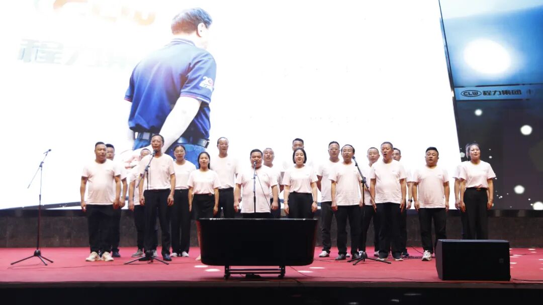 程力汽车集团中高层领导上台集体合唱《程力之歌》,分享与祖国共荣光的豪迈与荣耀。
