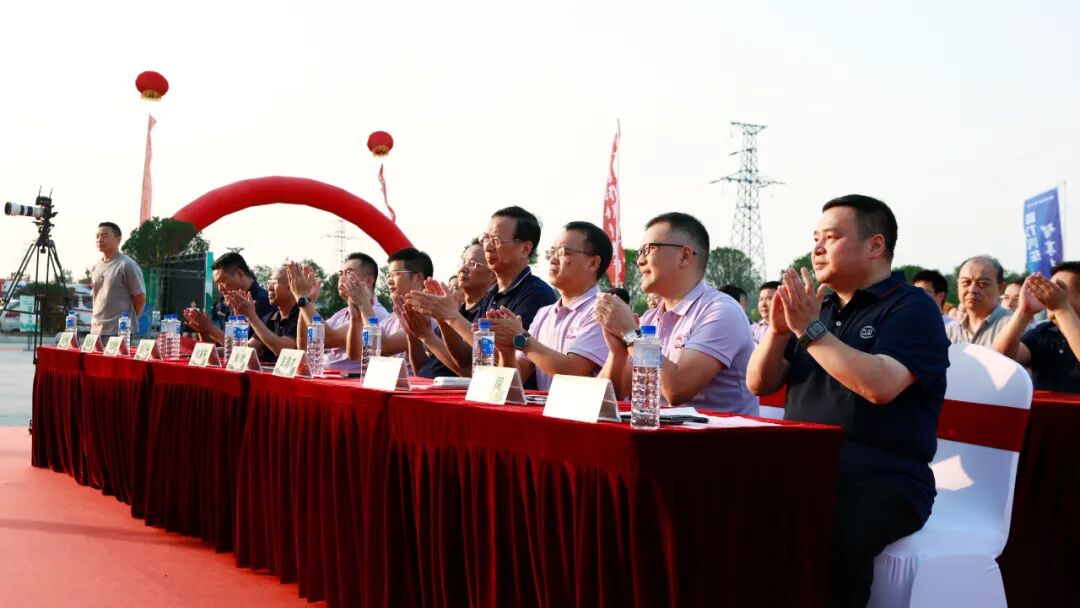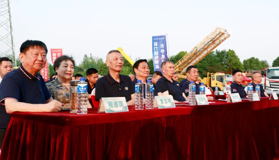 程力汽车集团董事长程阿罗(右一)、江铃销售有限公司常务副总经理李闯(右二)、江铃汽车股份有限公司产品研发总院特种车及工厂技术部部长黄刚(右三)、程力集团党委书记袁昌才(右四)、总经理朱武(右五)等领导嘉宾前排就坐。